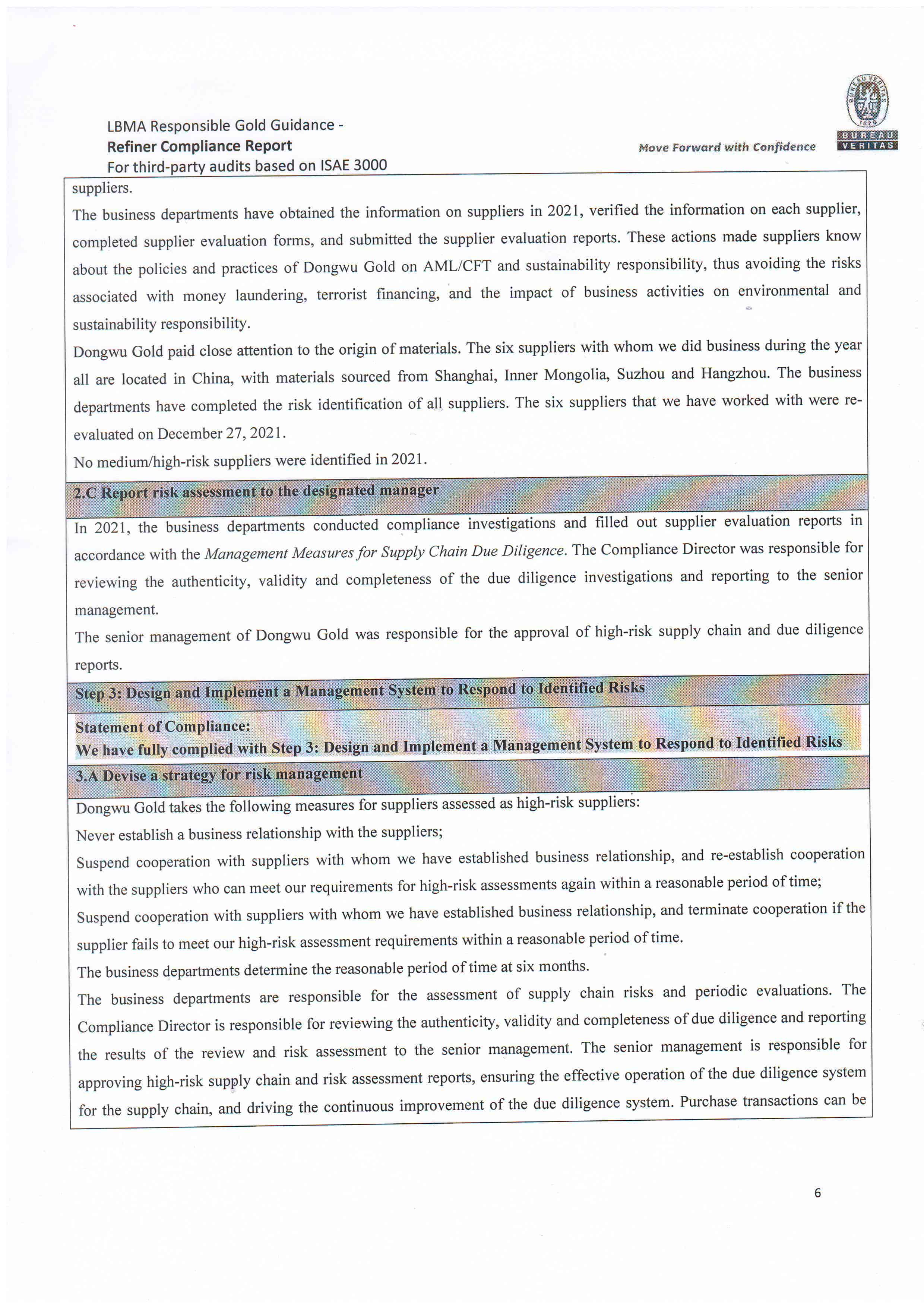 Dongwu Gold Refiner Compliance Report 2021